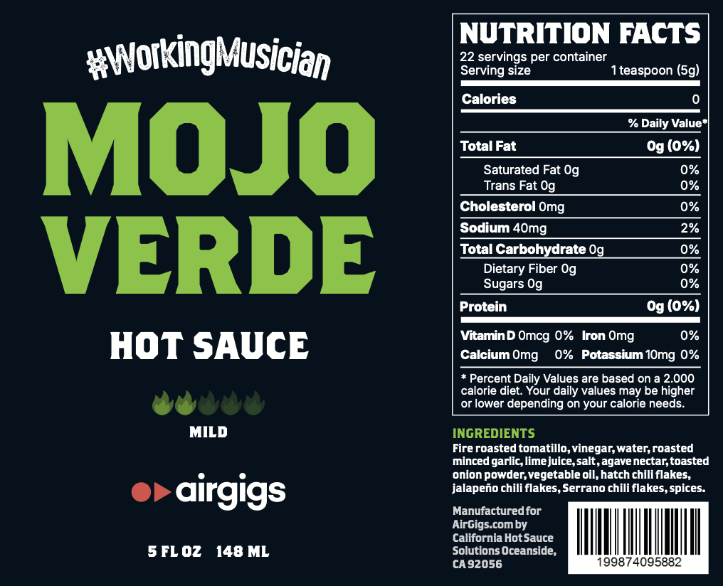 - Balanced heat - bold but usable, crafted for musician foodies